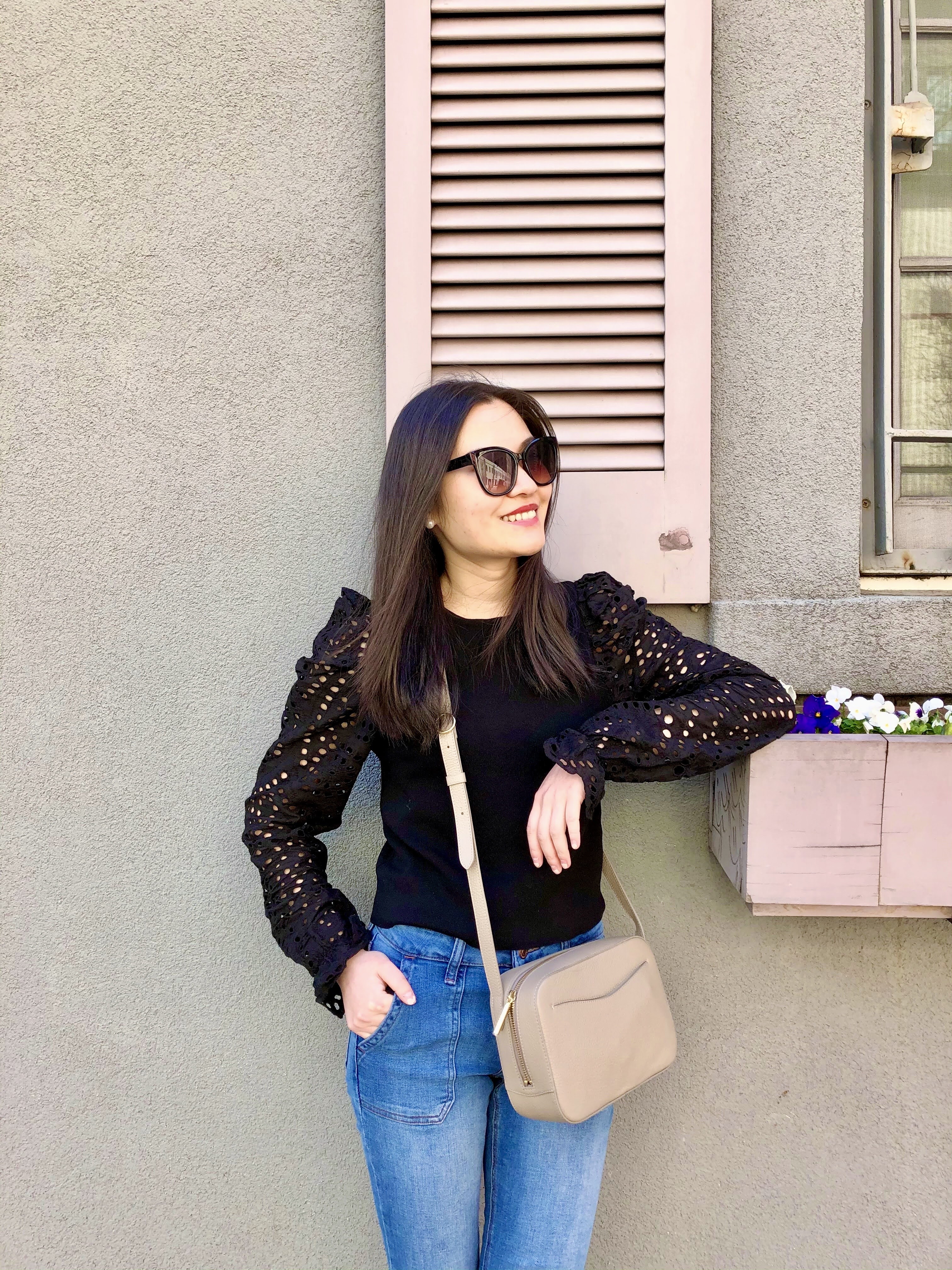 Take a look at my wardrobe, and you will know that eyelet is one of my favorite fabrics for spring/summer. It is breezy, and the extra embroidered detail just makes any piece look feminine and fancy. When I spotted this English Factory top online, I knew it was the one. I will be honest, I thought the puff sleeves were a little too dramatic for me at first. However, after a few more wears and assurance from my girlfriends, I am definitely warming up to the look.