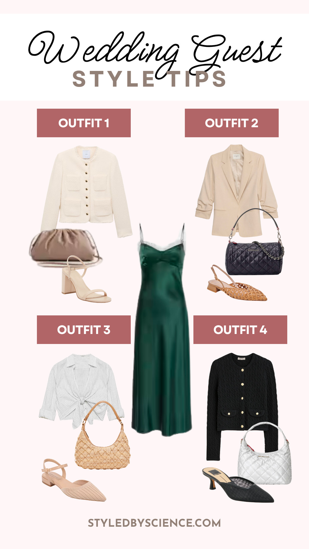 At every wedding, there comes a point in the night where the temperature drops and you wish you had a jacket. Or maybe you’re struggling to find the right layer to style it with! For something as simple as a slip dress, here are my favorite layering combinations. Steal these outfit ideas: